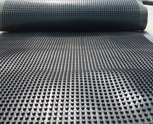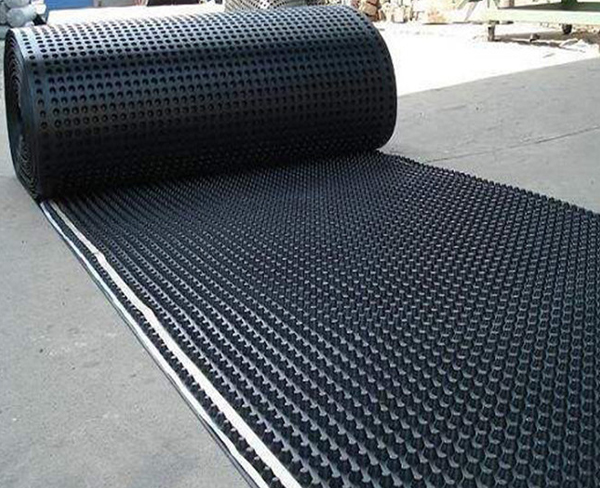 塑料排水板是由聚苯乙烯(HIPS)或者是聚乙烯(HDPE)為原料塑膠底板經過沖壓制成圓錐突臺或者加筋肋的凸點(或中空圓柱形多孔)而成,抗壓強度和整體平整度較高,幅寬有1~3米,長度有4~10米或者以上。