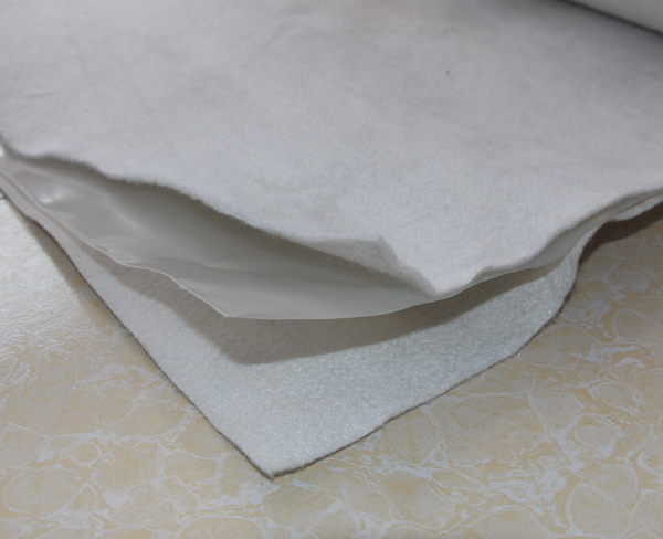 復(fù)合土工膜施工現(xiàn)場其主要機(jī)理是以塑料薄膜的不透水性隔斷土壩漏水通道,以其較大的抗拉強(qiáng)度和延伸率承受水壓和適應(yīng)壩體變形;而無紡布則是一種高分子短纖維化學(xué)材料,對防滲薄膜起到一定的保護(hù)作用,并有助于和壩體的結(jié)合。